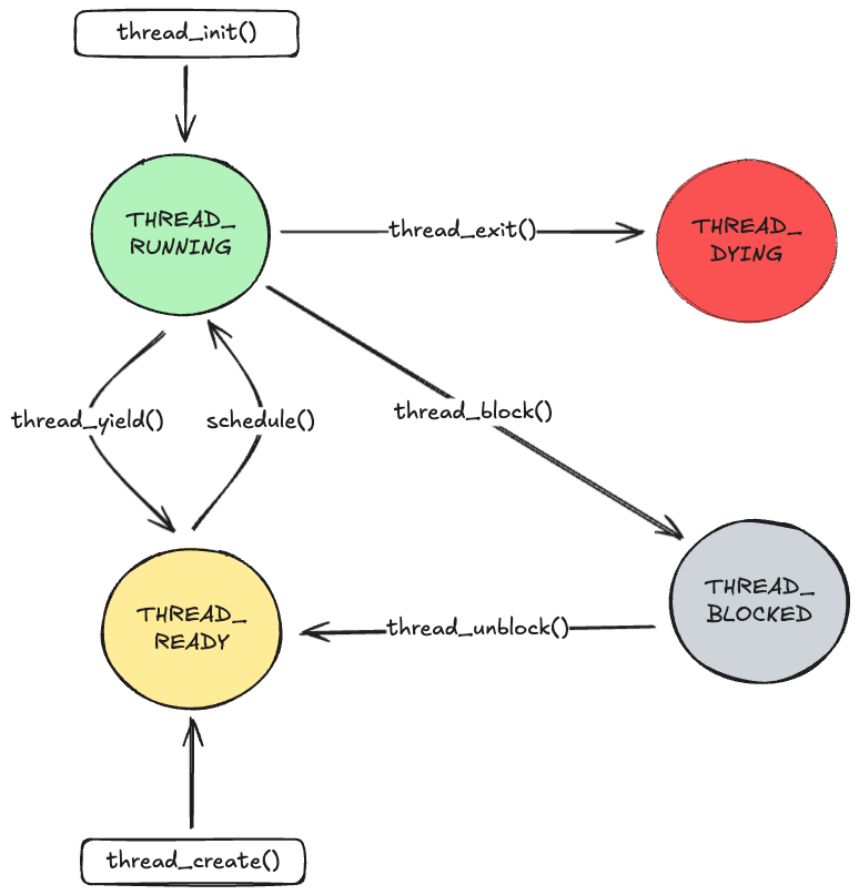 그림을보면 스레드를 Ready상태로 만드는thread_create()thread_unblock()